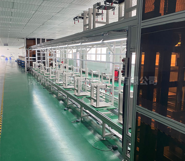 采用鋁板履帶式傳動(dòng),電氣采用PLC可編程序加變頻器,通過(guò)位置檢測(cè)傳感器和液晶顯示屏,真正實(shí)現(xiàn)裝配工藝的自動(dòng)控制,并可根據(jù)生產(chǎn)需要,調(diào)整參數(shù),人員的數(shù)量來(lái)控制產(chǎn)量,實(shí)現(xiàn)最大產(chǎn)能效率,流水線上方采用鋁合金支架,照明采用LED照明燈及LED防爆燈具(用于噴漆工位)及節(jié)能風(fēng)扇,符合國(guó)家節(jié)能減排綠色環(huán)保的要求,氣動(dòng)回動(dòng)采用不銹鋼管,采用進(jìn)口氣動(dòng)工具,保證工具可靠性,提高勞動(dòng)效率。